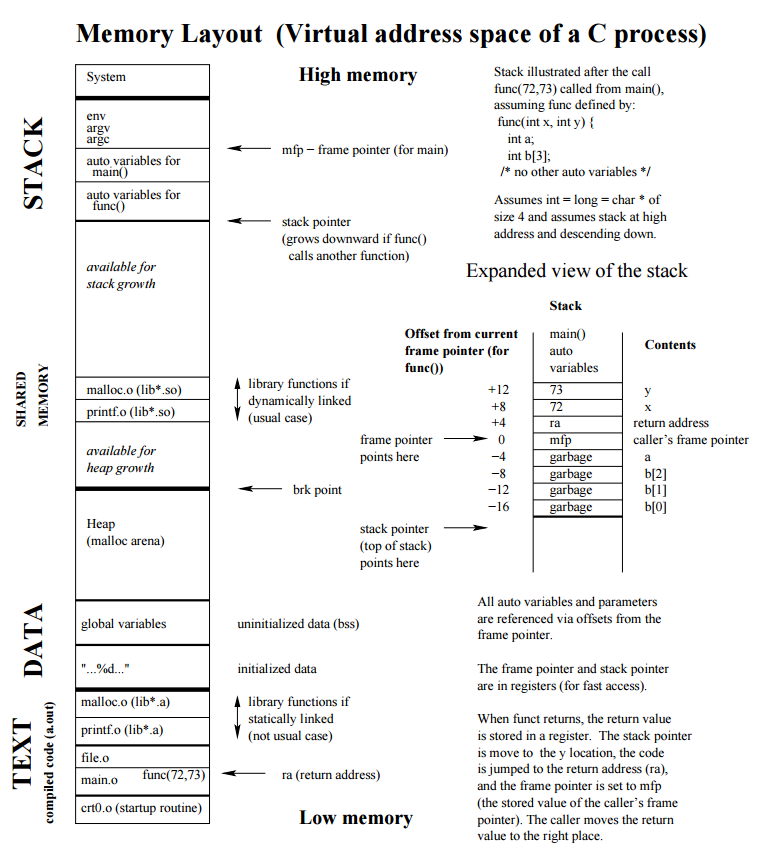 - 失败后的结果不同,当分配的栈太大或者死循环,或者递归的太深时会引起栈溢出(stack overflow)。而在申请堆时,请求的内存太大会引起内存分配失败。